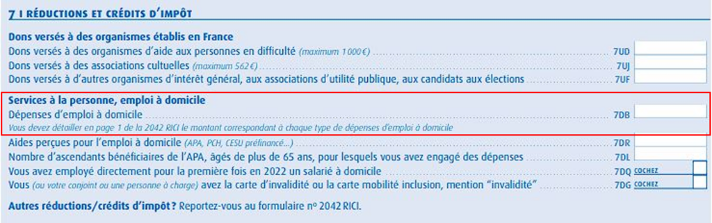 • Remplir : Dépenses d’emploi à domicile case n°7DB
